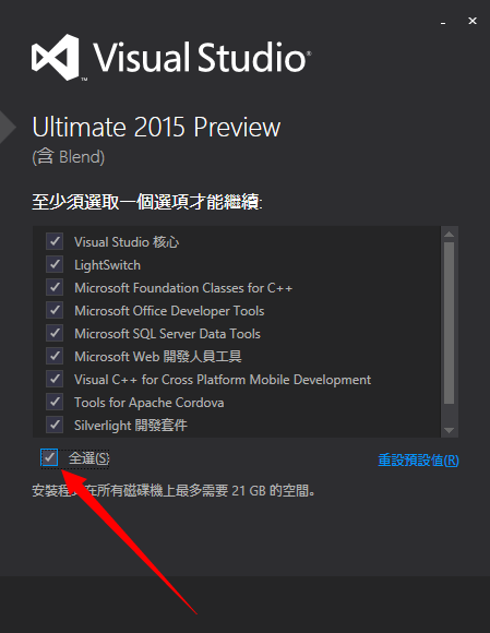 可以选择安装全部的功能,也可以安装适当的功能。本人选择的是全部安装。