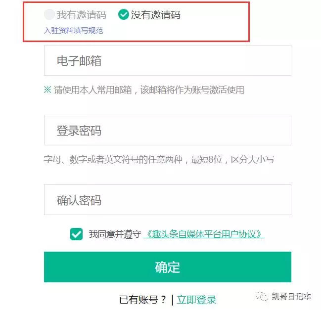 2、这里有两个选项,现在趣头条已经开放了注册,一般我们选择没有邀请码就可以了。
