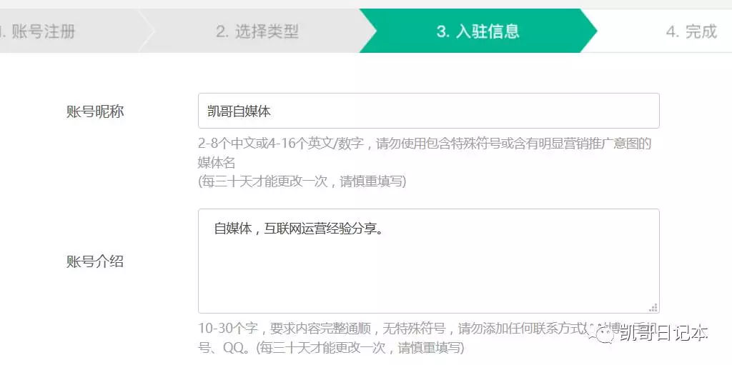 5、填写要入驻的自媒体信息,填写的时候一定要看清系统要求。