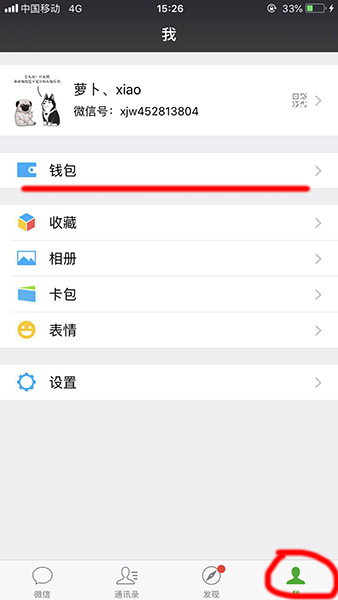 1、首先打开微信,进入【我的】点击【钱包】