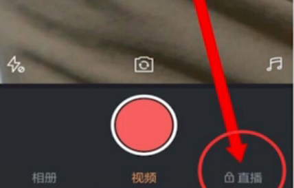 3、达到条件之后就会在拍摄视频的右下角有个【直播】通道