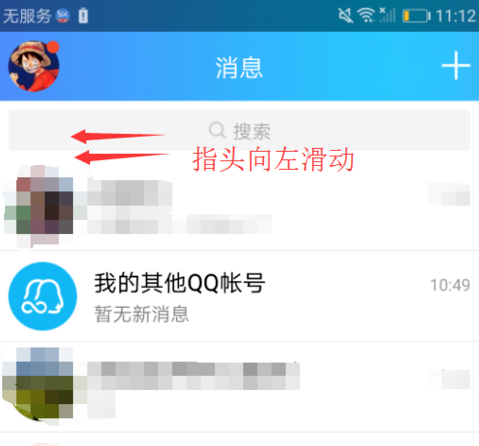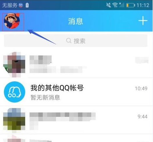 1、点击右上方的自己的QQ图像,向左滑动,即可看到自己的QQ状态;