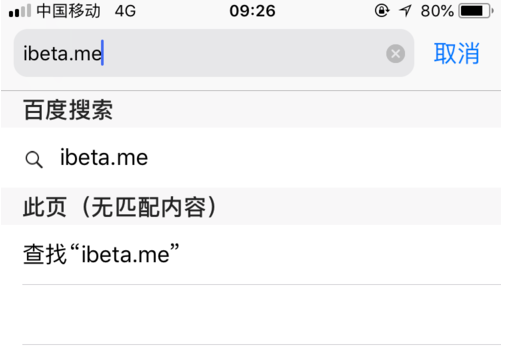 1、打开自带浏览器,输入ibeta后在下拉中选择ibeta.me进入