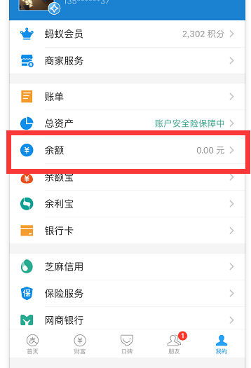 (2)银行卡绑定好了以后,选择“余额”进入;