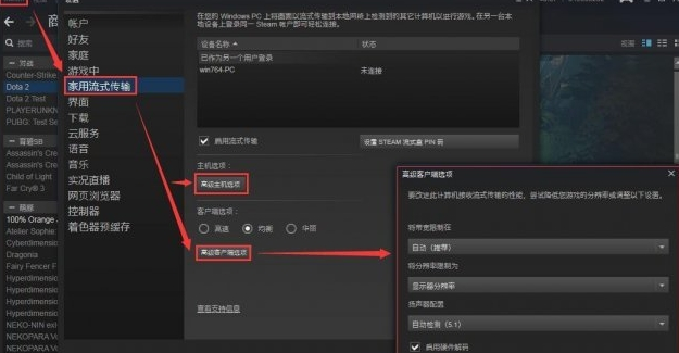 9.如果在连接后出现画面错误,颜色异常的,需要在Steam-设置-家庭流式传输-高级客户端选项 中设置