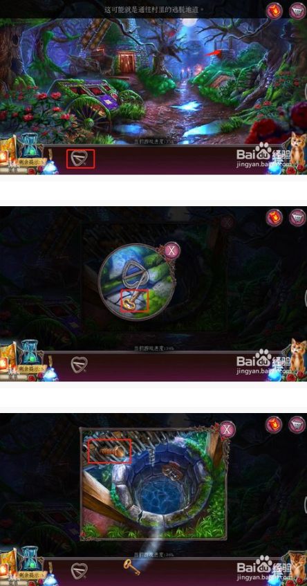 接着用胸针拿到水井缝里的钥匙,以及拿到一个螺丝。
