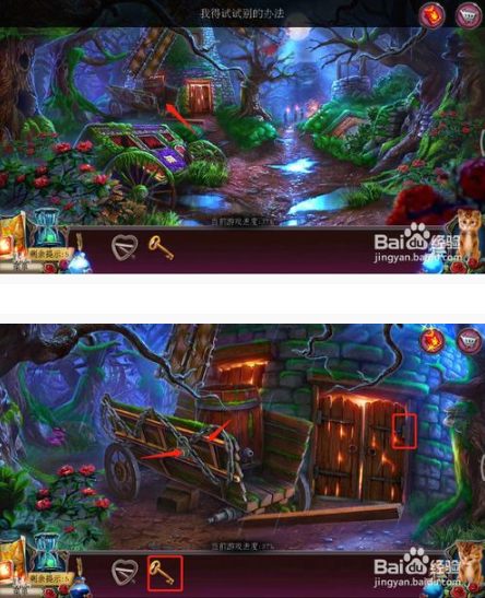 拿到扳手后,返回上一个场景,然后用螺丝和扳手拿到马车上的车轮。