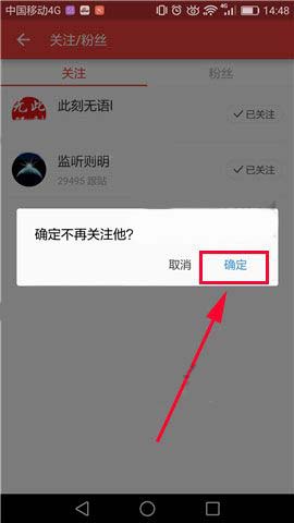 2)打开我关注的后选择好你要取消关注的选择,然后再点击【已关注】,点击已关注后会出现一个小窗口,接着你再点击【确定】就完成了。(如下图)