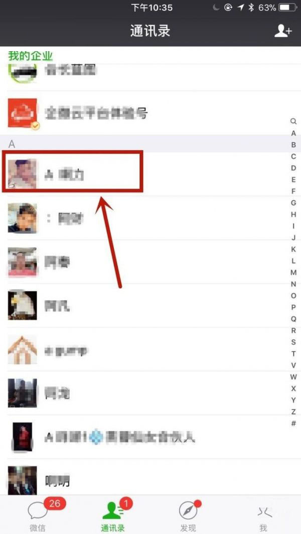 3、随后在打开的界面中,选择一个需要添加电话的【好友】;