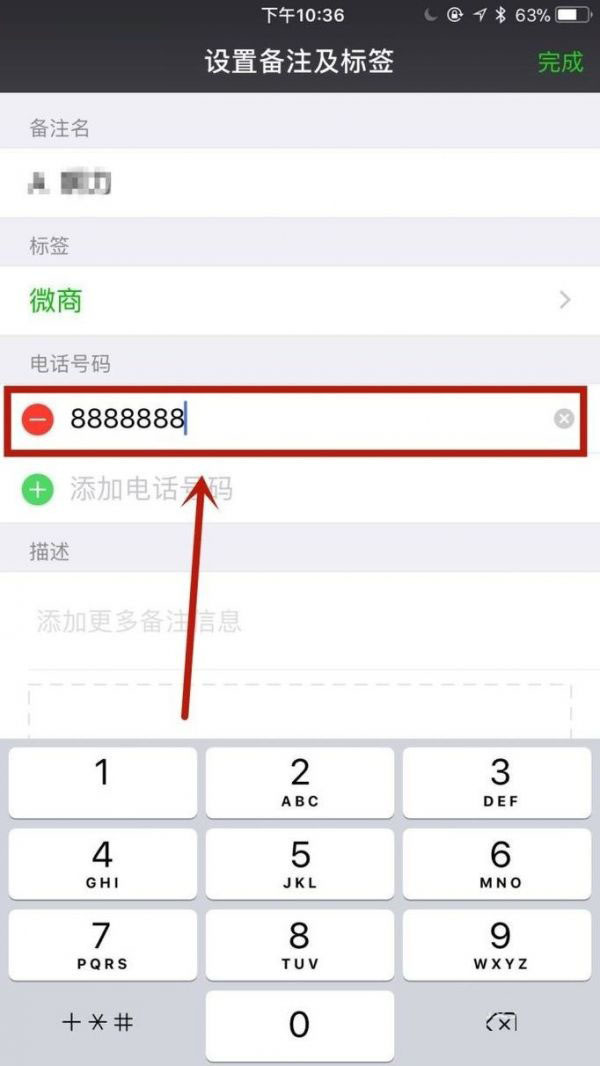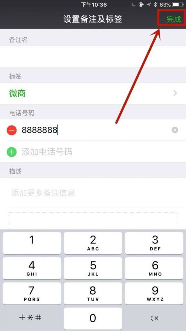 7、号码输入以后就可以直接点击右上方的【完成】选项;