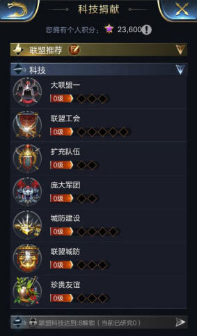 1、联盟中的每位成员均可通过科技捐献来获得个人积分。