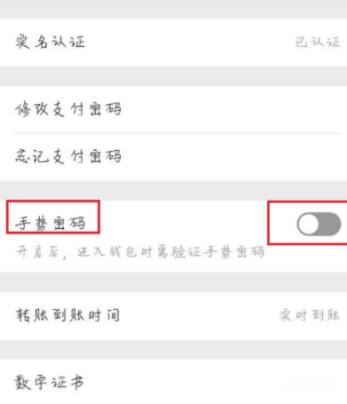 5.然后打开“手势密码”(如图);