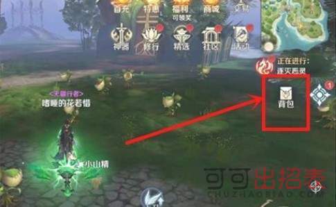 第二步,点击右侧的背包按钮,打开背包界面。
