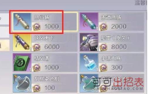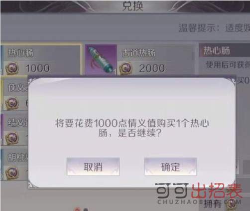 第五步,在情义值兑换页面,利用情义值兑换热心肠道具。
