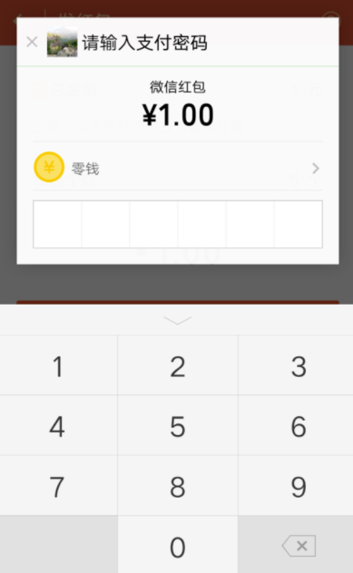 6.点击塞钱进红包,就如到支付密码输入页面,如图