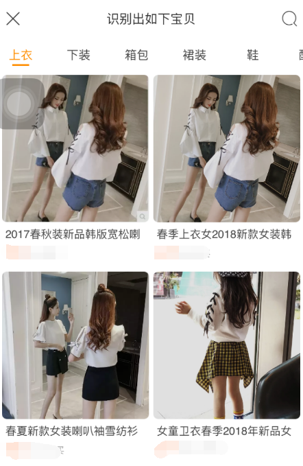 5.此时可见识别出如下宝贝下方可见该上衣的同款店铺,点击自己喜欢的店铺进行购买即可。
