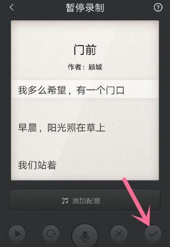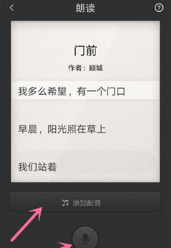 点击朗读后,系统会跳转到文章的朗读界面,可以添加背景音乐,添加好后,点击话筒进进录音。