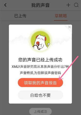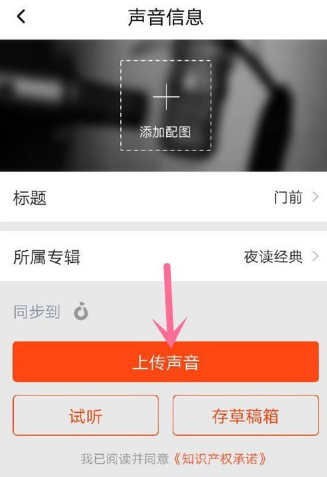 系统会自动跳转到上传界面,选择好封面,输入文章的名字,点击上传声音。