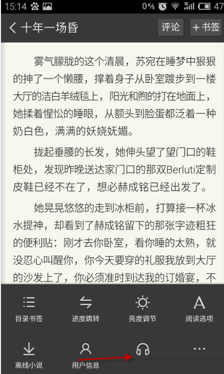 4、轻点阅读屏幕,跳出功能栏点击朗读即可
