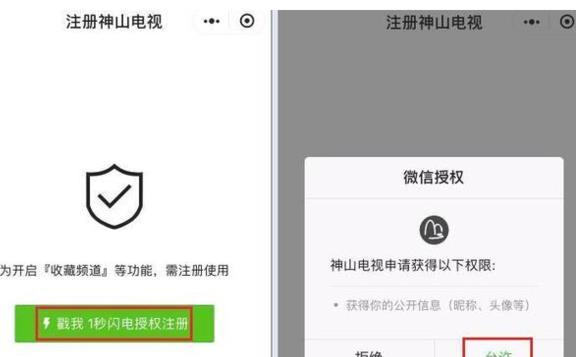 2、打开神山电视小程序,进入简单注册过程,然后再微信授权点击“允许”。