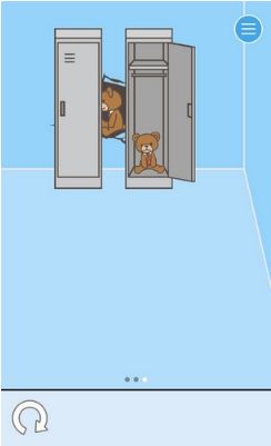 然后在第三个场景把左边的柜子推开,打开右边的柜子,得到两个泰迪熊。