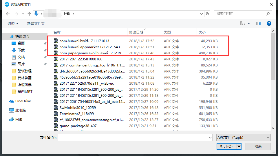 3.通过模拟器添加安装游戏apk和华为移动服务。