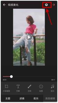 2.在视频页右上角有一个设置图标,点击这个设置图标即进入到片名和制作者编辑页面。