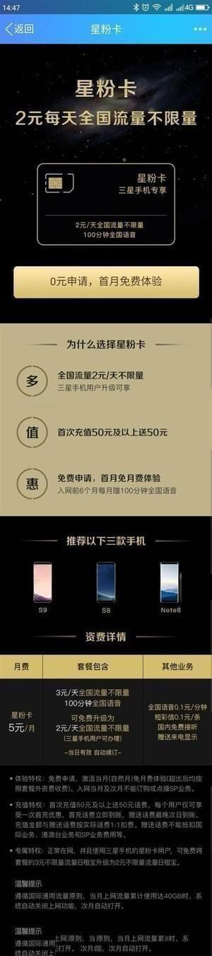 中国联通与三星将推出三星“星粉卡”,作为又一款高性价比的互联网流量套餐,这款产品将于3月16日接受办理,相较其它的日租卡性价比更高。