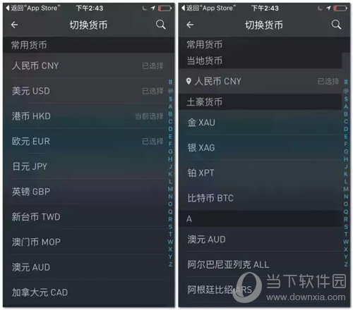 切换货币可选各种货币,包括所谓的土豪货币,可以随时查询金价或比特币价格,对于某一部分小土豪来讲,也是非常方便的。