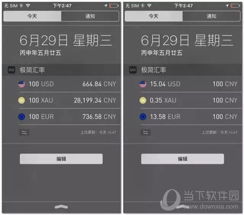 可以点击通知中心汇率模块左下角的切换按钮,切换不同的显示模式。