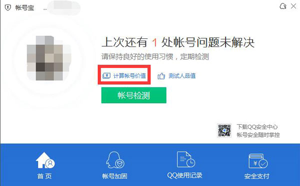 二、在账号宝界面选择计算账号价值。