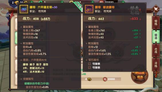 橙色装备:通常来说橙色装备多半为打造失败后的失败品,提升较低不推荐仙友携带,但是用于过渡也还勉强可以,用作主要培养就有点浪费了,当然也可以通过熔炼系统分解成素材,再回炉重造。