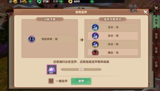 侍宠的变异天赋分为两种,一种是基础属性类的基础变异,另一种则是拥有技能BUFF效果的特殊变异。