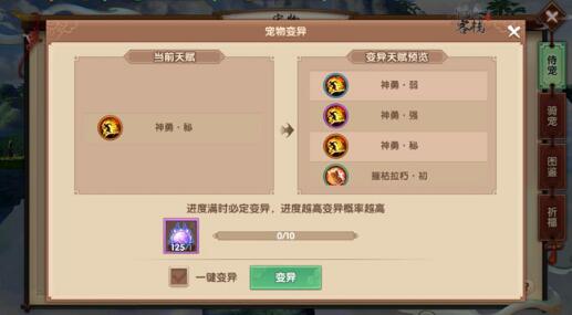 所以若是想要得到更优秀的天赋,就需要我们使用品级更高的侍宠才行。