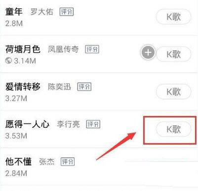 1、打开全民k歌软件,点击想唱的一首歌,点击K歌。
