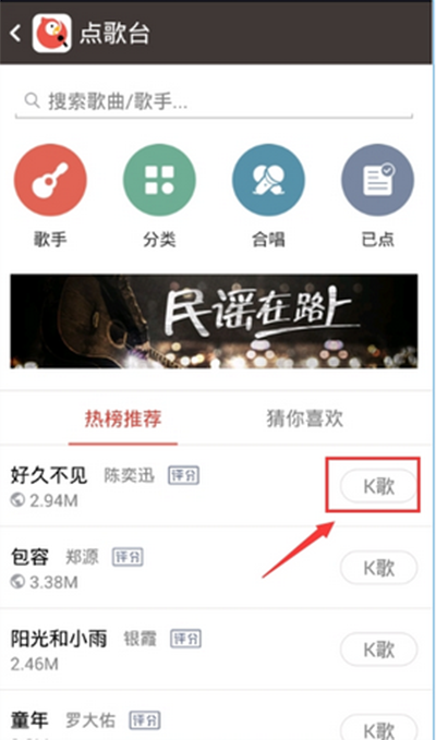 2、选择你想要发起合唱的那一首歌。