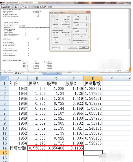 随后就可以看到自己运行的结果了,同时在excel文件中也可以看到lingo运行后的所返回的结果。做到了lingo和excel之间的数据传递。
