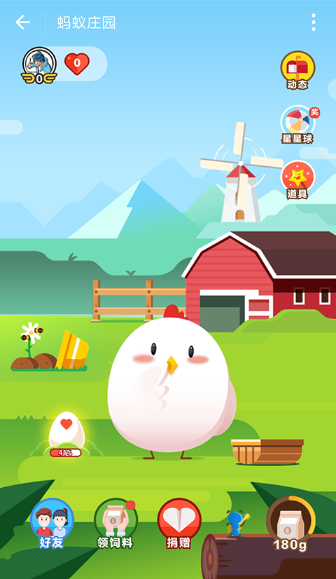 每次喂饱之后就可以产生爱心鸡蛋,集齐五颗就可以爱心捐赠,目前公益项目只有“帮助孤贫儿童打败先心病”一个项目。每募集到71.5万颗爱心,就能让一个贫困家庭的先心病患儿获得专业医疗救助。