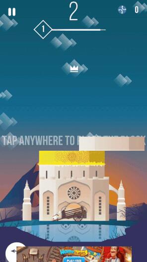一旦你某层塔没能成功堆叠,刺客就会正义凌然地攀上塔尖,伴着一声悲鸣一跃而下,掉入塔下水池中,一轮游戏就结束了(P.S.:刺客这一跃其实是沿袭了《刺客信条》的一贯设定,叫做“信仰一跃”)。