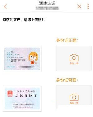 4、下一步后,需要用户上传自己的身份证件,身份证件需要实时拍摄,无法从相册中导入。