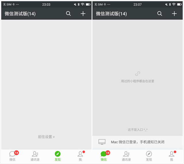 如果选择都关闭,那么发现页就会空空如也。这时有意思的事情发生了,微信首页上方跳一跳等小程序的入口都没有了。记得在十天前的微信公开课上,张小龙表示曾听到用户的反馈,想直接卸载跳一跳。他解释道:“用户想要卸载,是不可以的。这也是用户的一个困惑,其实小程序不用卸载,只要不用就可以了。”虽然不可以卸载,但微信如今给用户另一个选择——直接关闭。