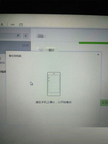 4.点击备份聊天记录至电脑会提示请在手机上确认,以开始备份。