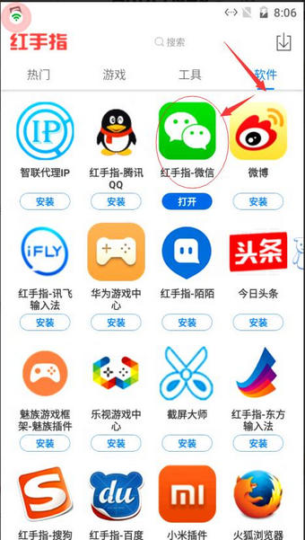 2、接着进入红手指云手机,在云手机应用市场搜索“微信”和“黑松鼠跳一跳”辅助APP并安装。