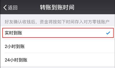 4、根据出现的页面选择你需要到账的时间,个人建议是2小时到账。既不会显得太久,也可以在转错账情况下有效做出相应对策。