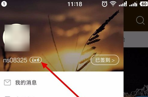 3.这时左侧就会弹出一个菜单,在上方头像下面旁边就会看到有一个“等级LV6”,我们点击。
