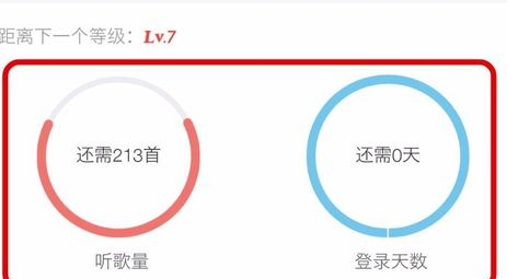 4.进入等级页面后,我们就会看到升等级需要哪些条件,一个是天数,一个是听歌量。