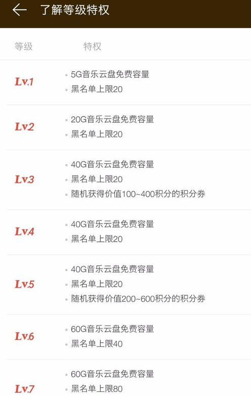 6.而且等级越高,获得的特权就好,这样我们也更有动力,好好听歌吧!