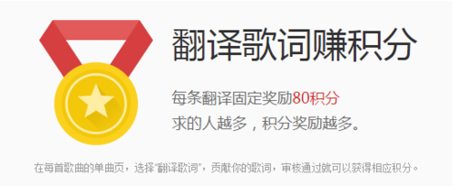 2、邀请好友和翻译歌词,成功邀请1名好友可获得100积分,翻译歌词可获得80积分。