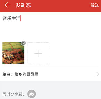 4、选择自己要发布的歌曲和内容,选择“发送”,如下图所示: