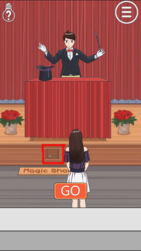 然后点击魔术手后面的帷幕,拉开后可以看到墙壁上有一个锁住的柜子,按住钥匙拖到柜子上,打开柜子